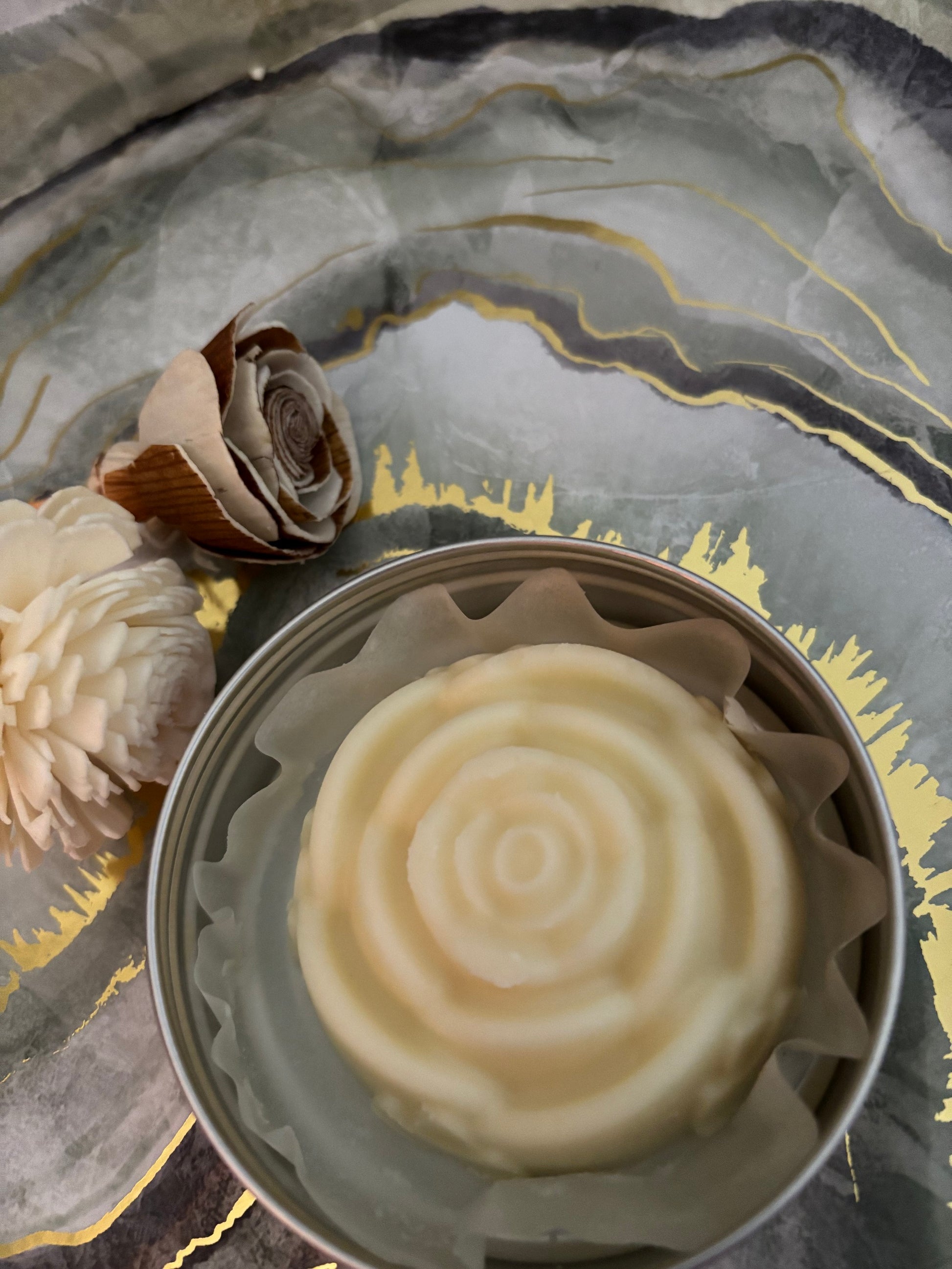Immerse yourself in the calming embrace of your chosen scent as you glide this sumptuous bar over your skin. Meticulously crafted with nourishing ingredients, this lotion bar is designed to moisturize and pamper, leaving your skin velvety smooth and delicately perfumed. The tranquil essence not only soothes your senses but also imparts a sense of relaxation to your skincare routine. Enriched with the finest natural ingredients ensures a lavish and aromatic experience, making self-care a moment of bliss. Elevate your skincare ritual with the enchanting fragrance and the indulgent nourishment of our exquisite lotion bar, leaving your skin feeling beautifully hydrated and infused with tranquility.